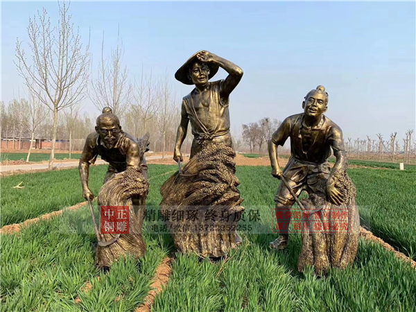 慶豐收主題銅雕塑,是以農(nóng)民、土地、糧食、農(nóng)具等等為核心元素,我國的傳統(tǒng)農(nóng)業(yè)曾長期領(lǐng)先于世界各國。我國的傳統(tǒng)農(nóng)業(yè)之所以能夠數(shù)千年長盛不衰,主要是由于我們的祖先創(chuàng)造了一整套的精耕細(xì)作、用地養(yǎng)地的技術(shù)體系,并在農(nóng)藝、農(nóng)具、土地利用率和土地生產(chǎn)率等方面長期處于世界領(lǐng)先地位。這主要得益于中國農(nóng)業(yè)的諸多世代相傳的優(yōu)良傳統(tǒng)和農(nóng)耕文化。