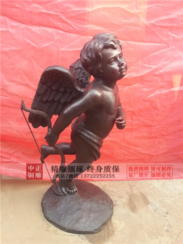 在古希臘神話中,丘比特是神話中非??蓯壅{(diào)皮的小天使,整天背著愛神之箭促成姻緣,因此銅雕廠家塑造的丘比特銅雕塑也多是小天使的造型。