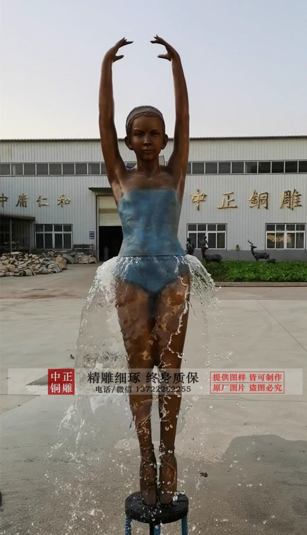 銅雕噴泉不僅美化了環(huán)境,而且讓人們看了賞心悅目,銅雕噴泉既能體現(xiàn)銅雕的堅(jiān)硬,又能展現(xiàn)出水的柔美,他們光潔細(xì)膩、亮麗迷人;除具有極高的觀賞和審美價(jià)值外,還可在水流往復(fù)噴射的過(guò)程中,將空氣中的塵埃粉粒吸附于水中沉淀,從而將空氣凈化,水分揮發(fā)又能對(duì)空氣進(jìn)行有效加濕,改善和潤(rùn)澤氣侯;