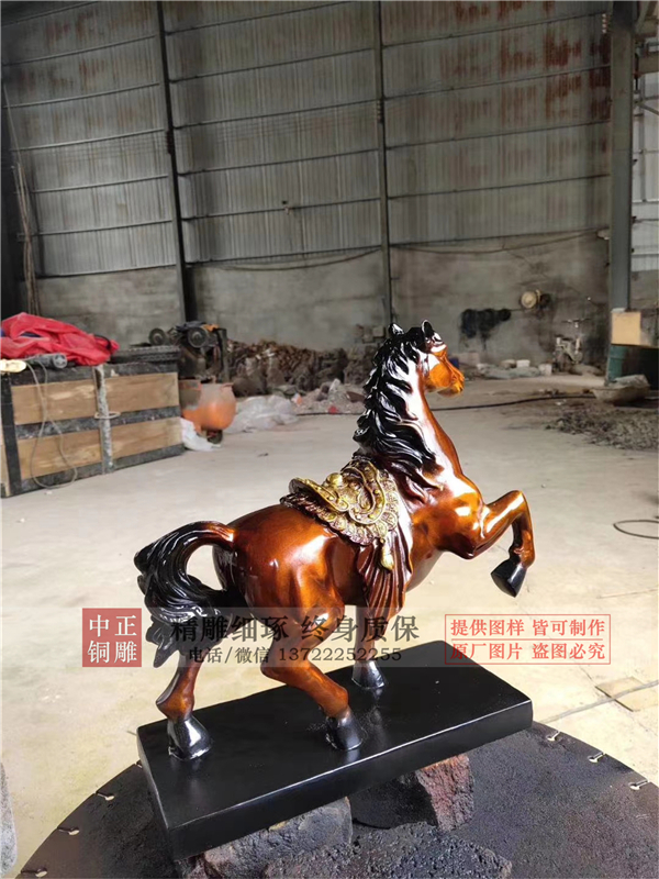 我們知道銅馬雕塑是銅雕工藝品,它的造型是很多的,馬健壯而且肥碩、昂首嘶鳴,抬腿欲進,翹尾而立,富于動感而且栩栩如生。并且馬生性善良溫和,通靈性,早在戰(zhàn)爭年代他就是我們的好朋友,它馳騁沙場的霸氣令我們所折服,他和主人出生入死的情懷令我們感動。