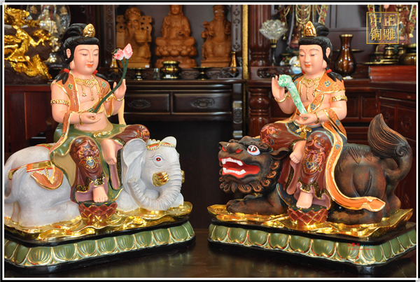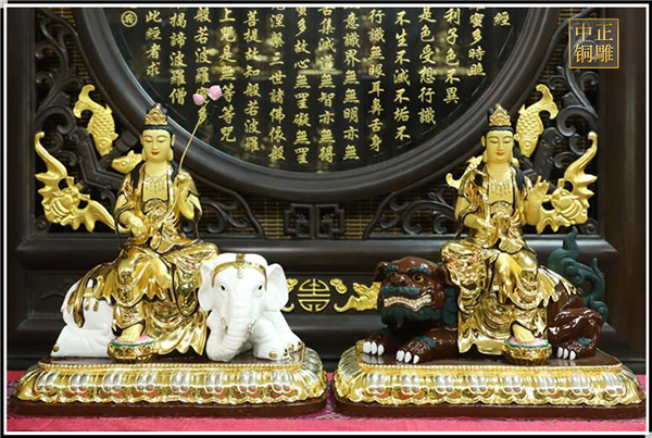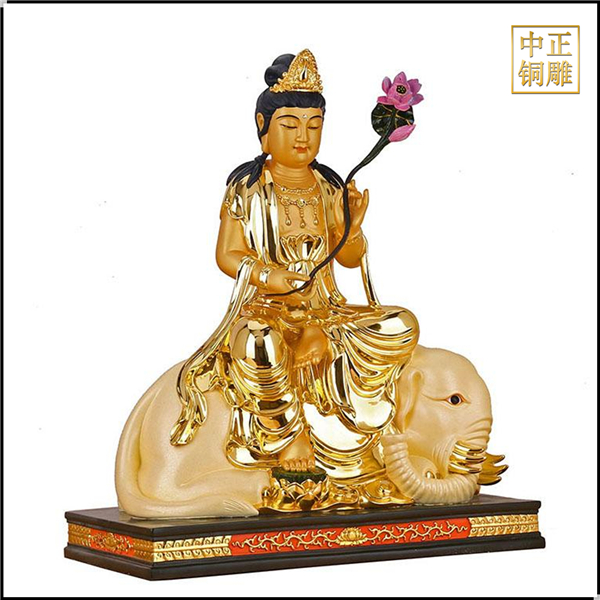 普賢菩薩,也叫遍吉菩薩。大家都很熟悉,是我們中國(guó)四大菩薩之一,有“一切如來(lái)長(zhǎng)子”之稱。我們經(jīng)常聽說(shuō)的華嚴(yán)三圣:文殊、普賢、毗盧遮那佛,其中就有普賢菩薩,文殊菩薩代表解門,普賢菩薩代表行門,今天就來(lái)說(shuō)一說(shuō)文殊普賢銅佛像中普賢菩薩的功德都有哪些。