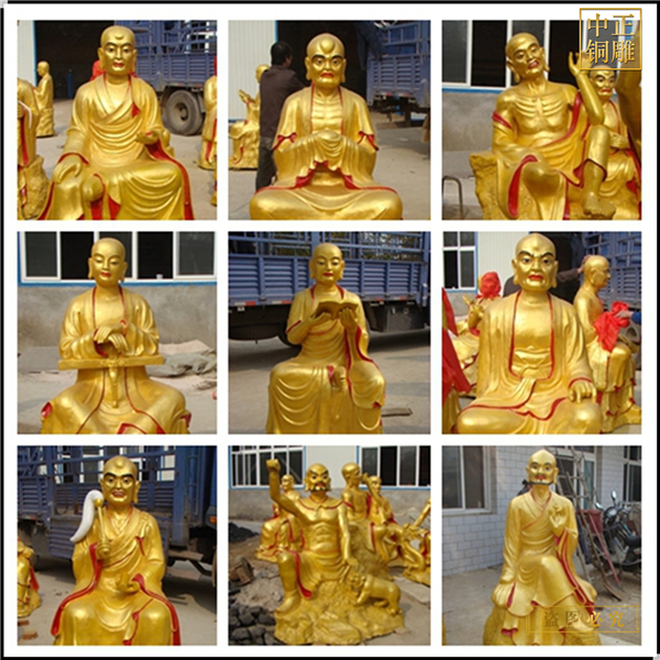 而這些羅漢的形象都是由后來的藝術(shù)家憑借自己的想象創(chuàng)作出來的,原來這些羅漢像并沒有固定的形象。古代許多著名畫家都畫過十六羅漢圖,而現(xiàn)在的羅漢像大多也是參考那些畫像而創(chuàng)作出來的。羅漢除了有銅雕十八羅漢和十六羅漢之分,還有更大陣勢的銅雕五百羅漢呢?