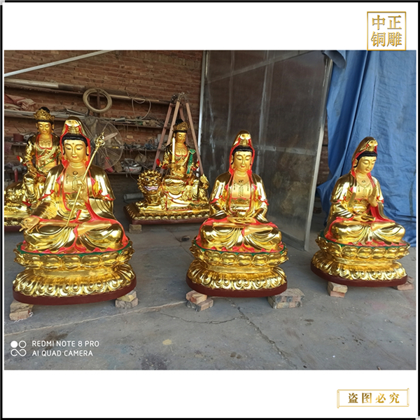 第六,表面工藝處理:一般佛像都是需要進(jìn)行表面處理工藝的,一個(gè)是讓表面看上去更美觀,讓佛像看上去更真實(shí);另一個(gè)就是掩蓋生產(chǎn)過程產(chǎn)生的沙眼和焊接等粗糙部位。表面處理工藝主要包含熱著色工藝、貼金箔、彩繪、鍍金、鎏金等幾類,還有一些局部處理工藝等等。