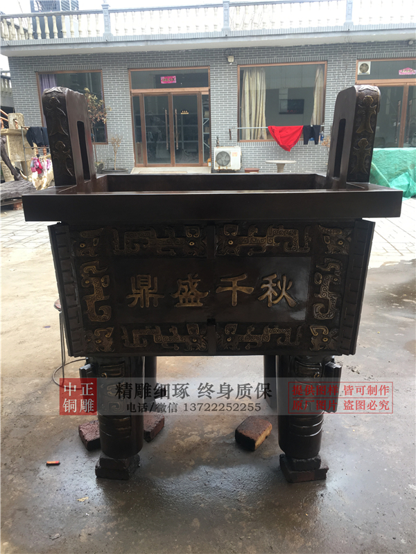 關(guān)于“鼎”的典故最有名的就是“九鼎”?!熬哦Α辫T于夏代,一種觀點認為是治水有功的“禹”鑄了九鼎,還有一種觀點認為是禹的兒子、夏代的開創(chuàng)者“啟”鑄了九鼎。大禹治水之后劃分天下為九州,九州的長官叫“州牧”,九州的州牧因為夏朝有德而臣服于夏朝的統(tǒng)治,向夏朝進貢了銅。夏朝的統(tǒng)治者用這些九州州牧所進貢來的銅鑄了九只鼎,每一只鼎作為一個州的象征。在每一個州對應(yīng)的那只鼎上把這個州的山川物產(chǎn)等都畫成圖也鑄上去。這樣天下百物鼎上都有記錄,人民就知道如何分辨。這樣看來,九鼎象征的是天下九州,“九鼎”已經(jīng)具備了特殊含義,不再僅僅是最初的生活實用器。九鼎可以震懾魑魅魍魎,九鼎還能使上下團結(jié)一心,使統(tǒng)治者接受上天的福佑。從夏鑄九鼎開始,“鼎”就成了國之重器,既是統(tǒng)治權(quán)力的象征又是吉祥物。中正銅雕-鑄銅鼎價格優(yōu)惠,定做鑄銅鼎價格優(yōu)惠,加工鑄銅鼎價格優(yōu)惠,我公司現(xiàn)主要生產(chǎn)各種城市雕塑,動物雕塑、偉人雕塑、西方人物、銅浮雕,古今中外的各界名人肖像雕塑、偉人和科學文化名人。各種寺院佛像,銅鐘,香爐。還有各種款式的西方人物雕塑供客戶選擇。這里有優(yōu)秀的服務(wù),優(yōu)秀的產(chǎn)品,歡迎前來致電訂購。