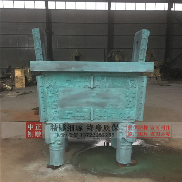 眾所周知,相比于純銅,青銅的硬度非常高(青銅是銅和錫或鉛或砷等元素的合金),古人在制作一些小而薄的青銅器時(shí),可以采用錘揲、鏨刻的方法來成型并增加紋飾,但是如果想要制作出器型大、器壁厚的銅器,就無法錘揲成型,也無法直接在器身上直接雕刻花紋了,必須通過鑄造的方法來同時(shí)完成成型和裝飾。中正銅雕-定制青銅寶鼎,加工定制青銅寶鼎,批發(fā)定制青銅寶鼎,我廠成立于2014年.我公司是唐縣銅雕的知名企業(yè),主要以各種大型銅雕鑄造加工于一體.主要產(chǎn)品有,寺廟佛像、香爐、銅鐘、城市雕塑、動物雕塑、偉人雕塑、西方人物、銅浮雕等,品種齊全,價(jià)格合理。
